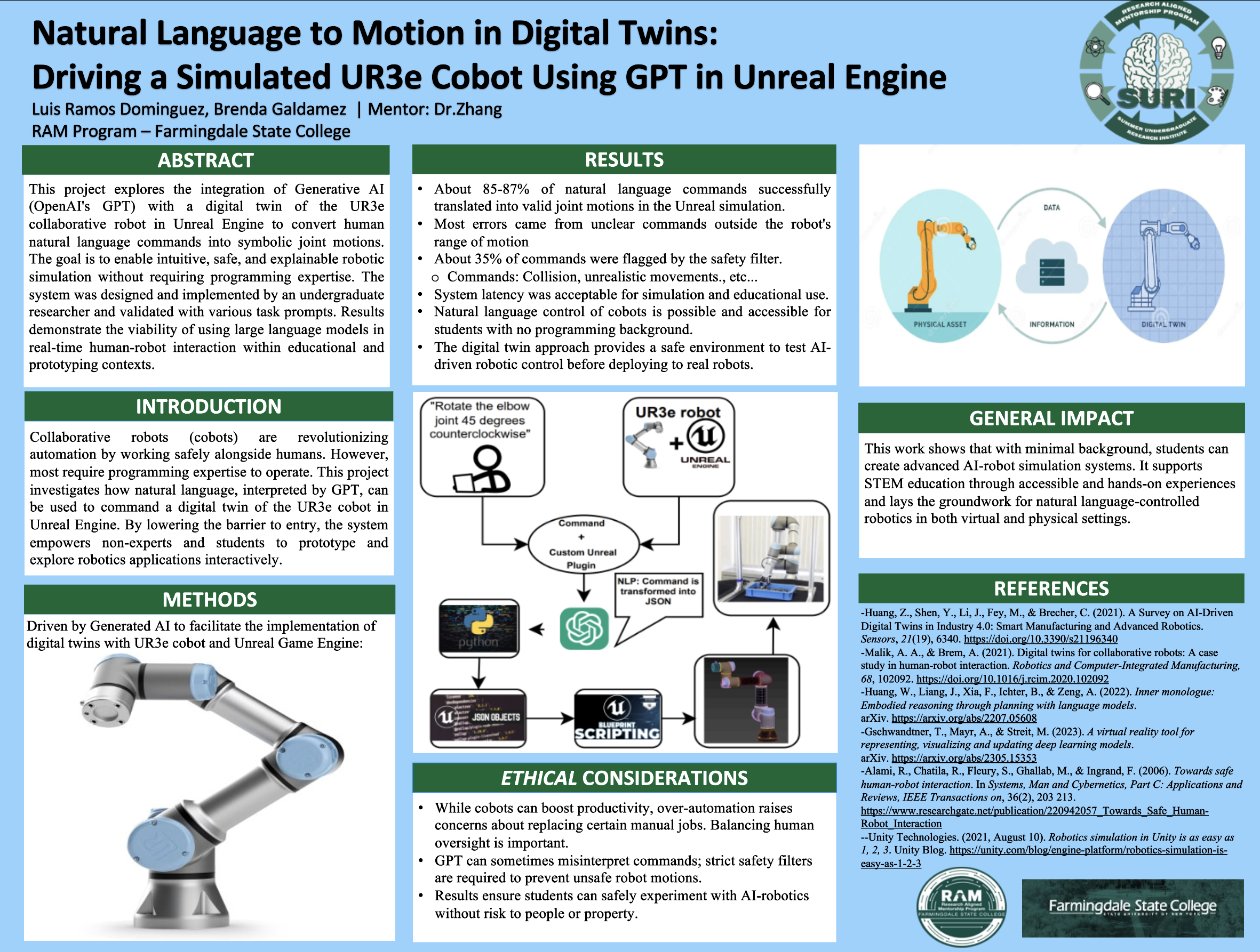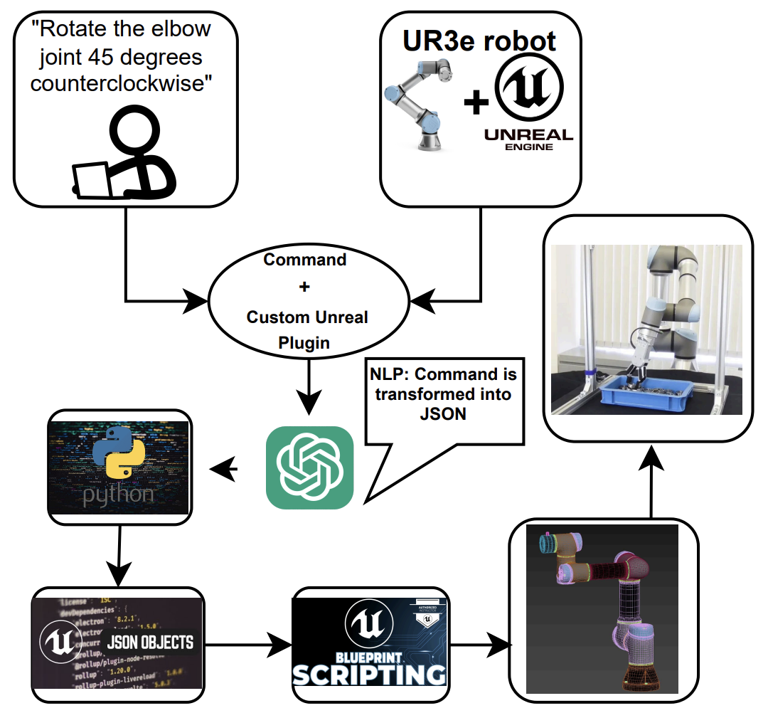- Collaborated in a 2-person team to develop a GPT-to-Unreal Engine pipeline enabling natural language control of a UR3e collaborative cobot digital twin, achieving ~85% command success rate with low latency
